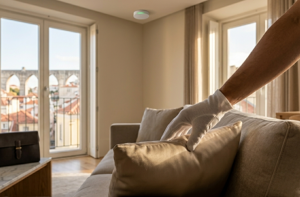 - Controlo de ruído: Instalamos sensores de decibéis que alertam a nossa equipa no primeiro sinal de ruído excessivo — garantindo intervenção rápida antes que o condomínio seja incomodado.